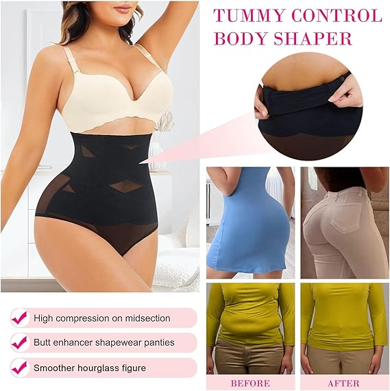 X-Shaped Cross Panel Double Tummy Control Briefs: Our advanced new seamless body shaping underwear with high waist design, double layer X-shaped panels on the abdomen target body shaping, 360° shaping your abdomen, tighten waist, back and abdomen, tighten the abdomen with higher compression, tighten stubborn loose fat around waist, effectively reduce waistline, smooth mommy pouch and sagging belly, these body shaping high waist briefs make you look great in any clothes, boost confidence.