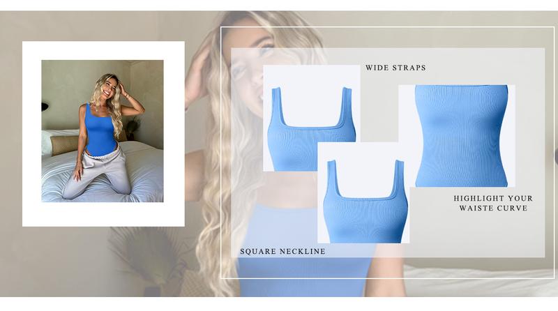 •Sexy Ribbed Square Neck Tank Tops Bodysuits,with flattering square neckline, sleeveless, wide set straps simple in design, don’t see through, are the best clothes for ladies, and teen girls.